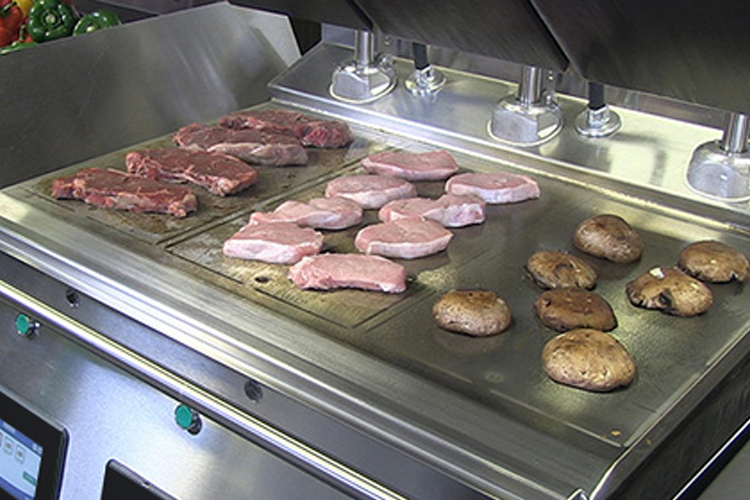 The advances temperature control system eliminates temperature overshoot & undershoot and increases temperature uniformity with five independently controlled heat zones - three on the griddle plate and two on the platen. The lower griddle plate is made of 3/4” thick high-polished carbon steel for quicker recovery. Rapid recovery and pre-heat features save energy by allowing the griddle to cool between peak periods.